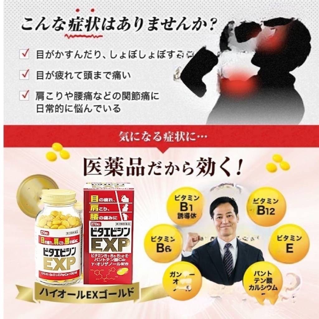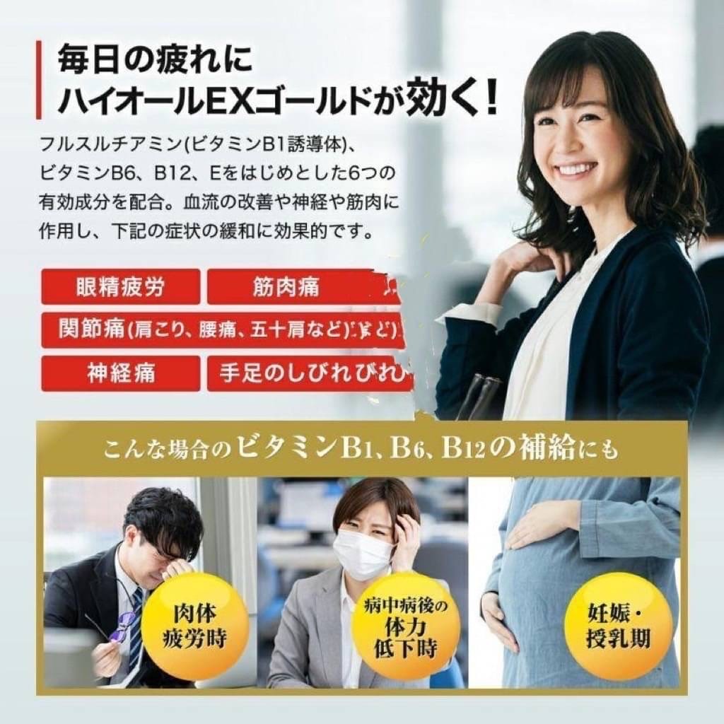 ビタミンB1・B6・B12は神経や筋肉に働きかけて糖分の代謝を促進し,疲労を回復します。 またガンマ-オリザノールを配合することにより自律神経の働きを助け眼精疲労や,肩こり, 腰痛などの関節痛,神経痛の改善に役立ちます。ビタミンEは血流を良くして手足のしびれ や肩こりに効果があります。パントテン酸カルシウムは脂肪・糖分の代謝を促進します。
