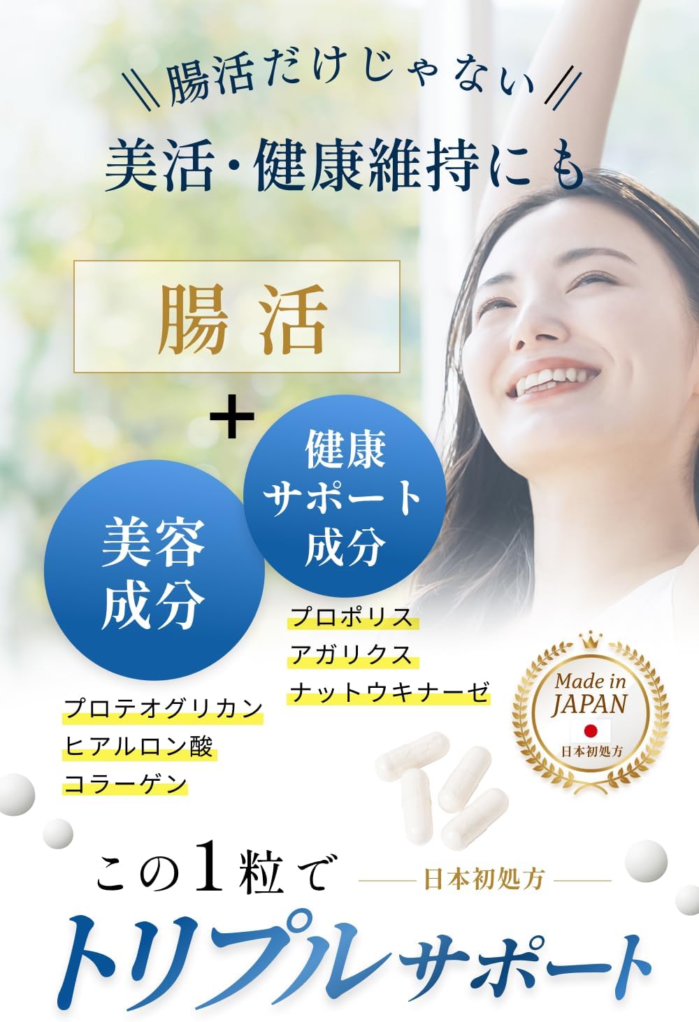 - 【美活&健康サポート成分配合】コラーゲン、ヒアルロン酸、プロテオグリカンなど美活サポート成分やナットウキナーゼ、アガリスク、プロポリスなどの健康サポート成分を配合しています。